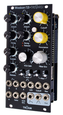 De Weston Precision Audio Trivium is een Eurorack-module die multifunctionele mogelijkheden biedt voor het beëindigen van een signaalketen of synthesizergeluid. Deze module beschikt over een discrete OTA state variable filter, dat schakelingen voor low-pass, band-pass en high-pass bevat, met bedieningselementen voor cutoff, resonance en envelope-modulatie. Tevens is er een geïntegreerde VCA en meerdere enveloppe-instellingen beschikbaar, waaronder ADSR en AD/R enveloppen met CV-ingangen.