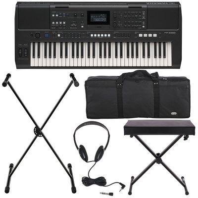 De Yamaha PSR-E583 Deluxe Bundle is een pakketaanbieding die bestaat uit verschillende componenten. Deze bundel omvat de Yamaha PSR-E583, een Millenium KB-2006 Keyboard Bench, de t.bone HP 66 hoofdtelefoon, de Millenium KS-1001 keyboard standaard en de Thomann Keyboard Bag 2. Elk onderdeel is ontworpen om samen te functioneren en biedt de nodige ondersteuning en bescherming voor het gebruik van het keyboard.